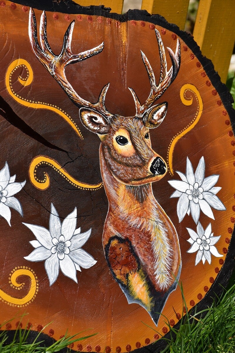 Handgefertigte Kunstwerke auf Holz, aus heimischen Wäldern.